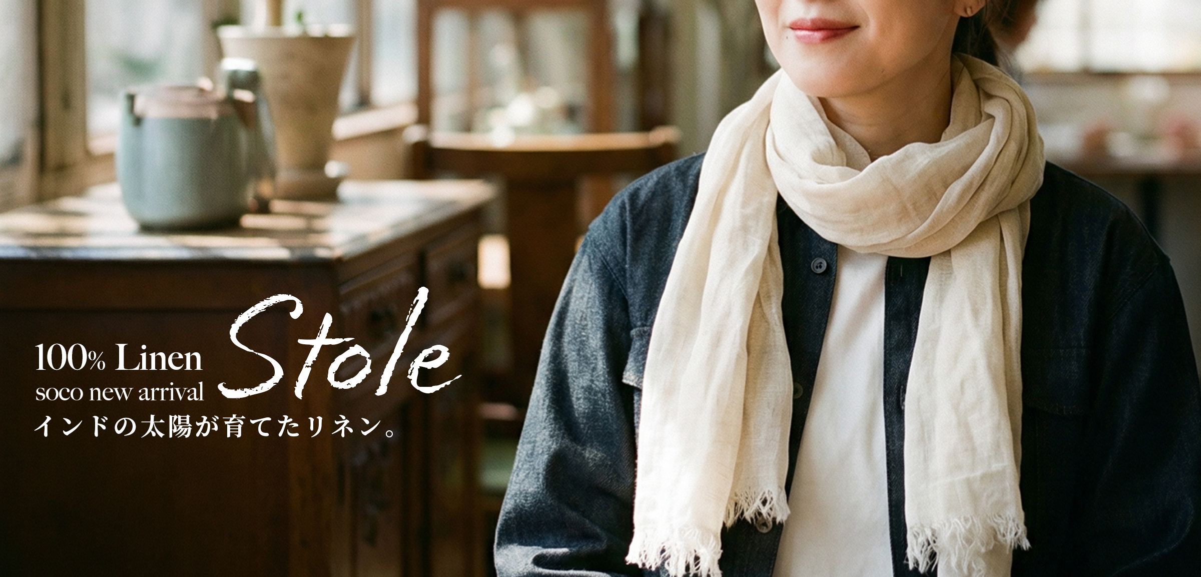 【素肌が呼吸する】驚くほど軽い、インドリネン・エアリーストール / 2色展開 z099z